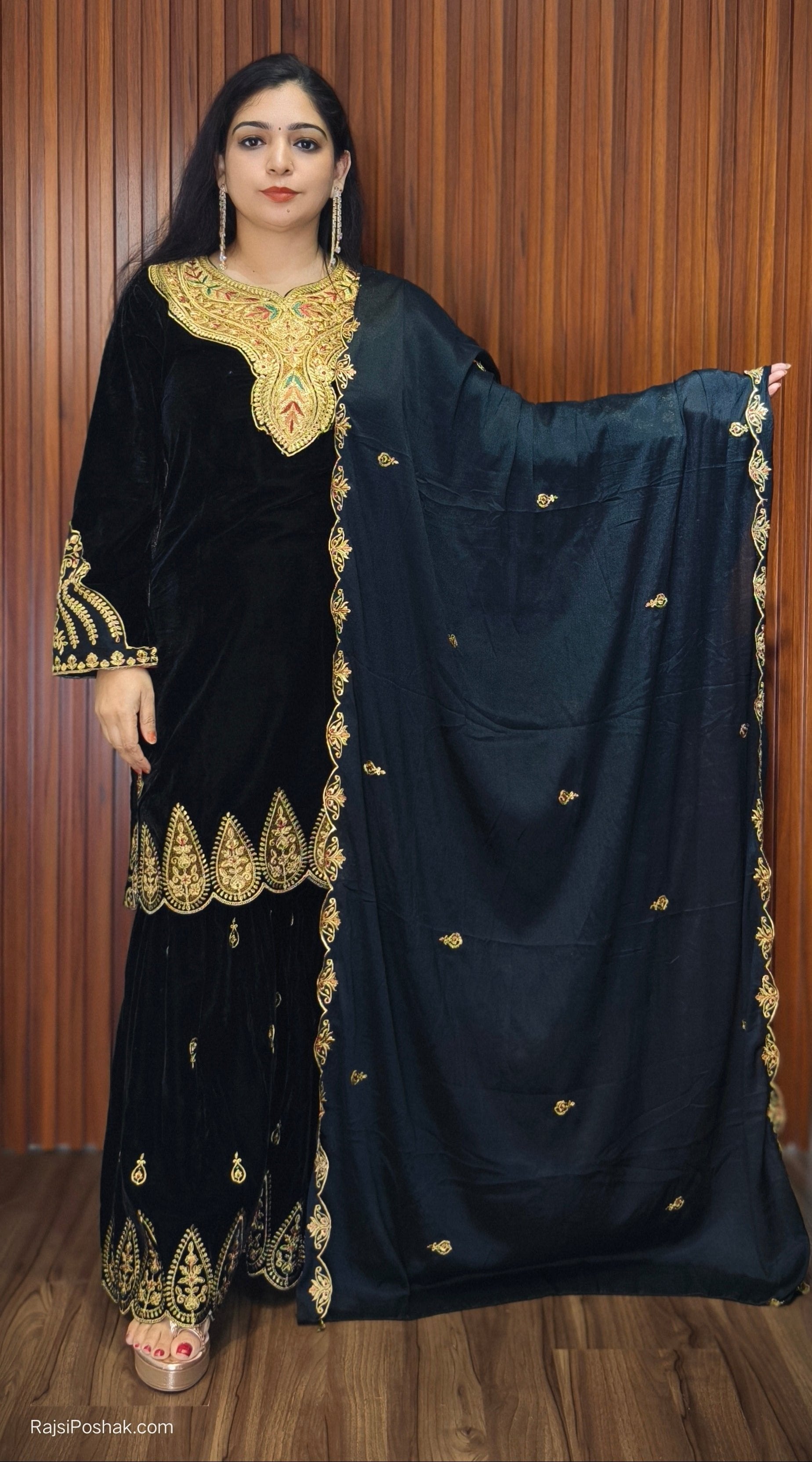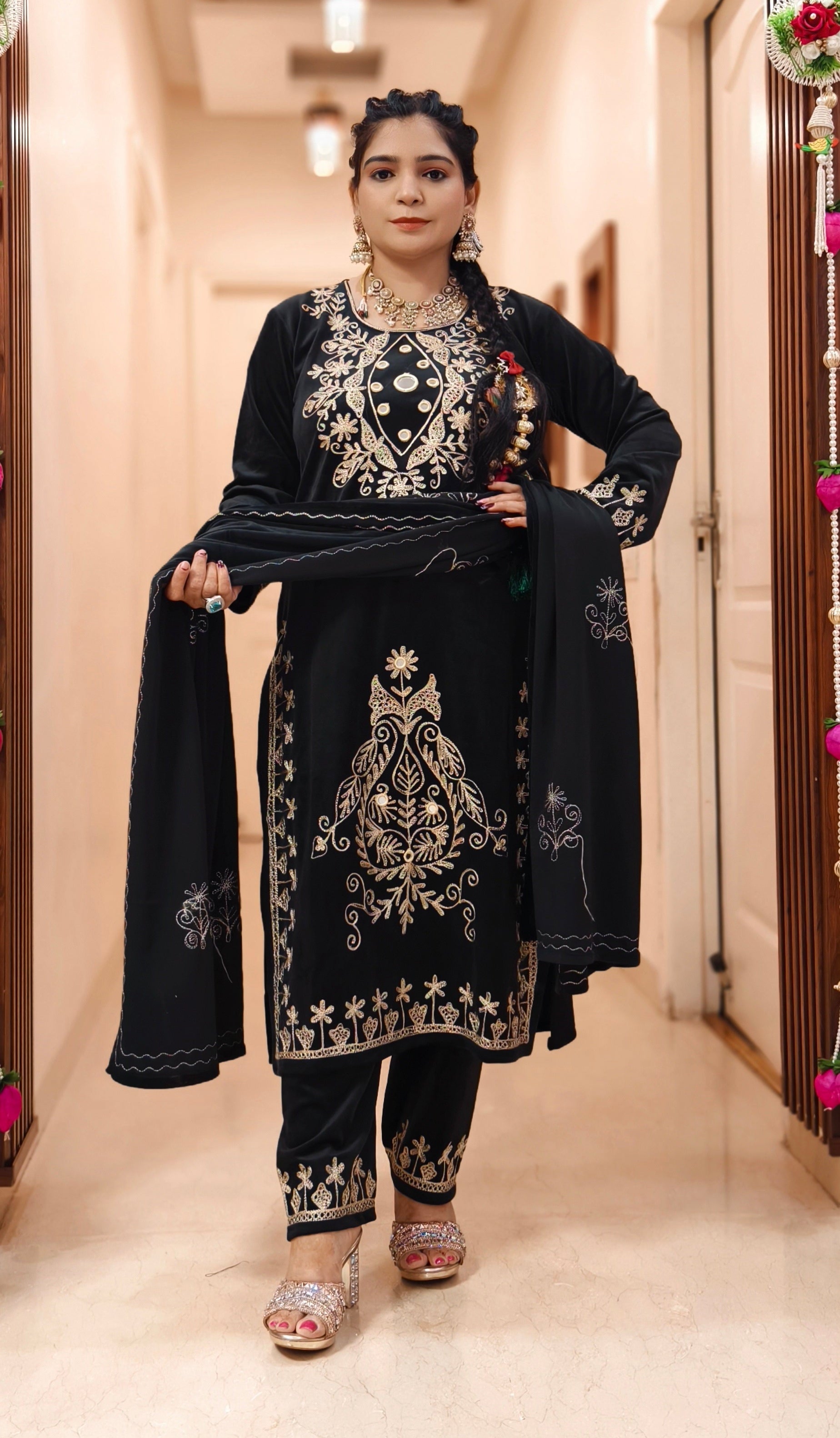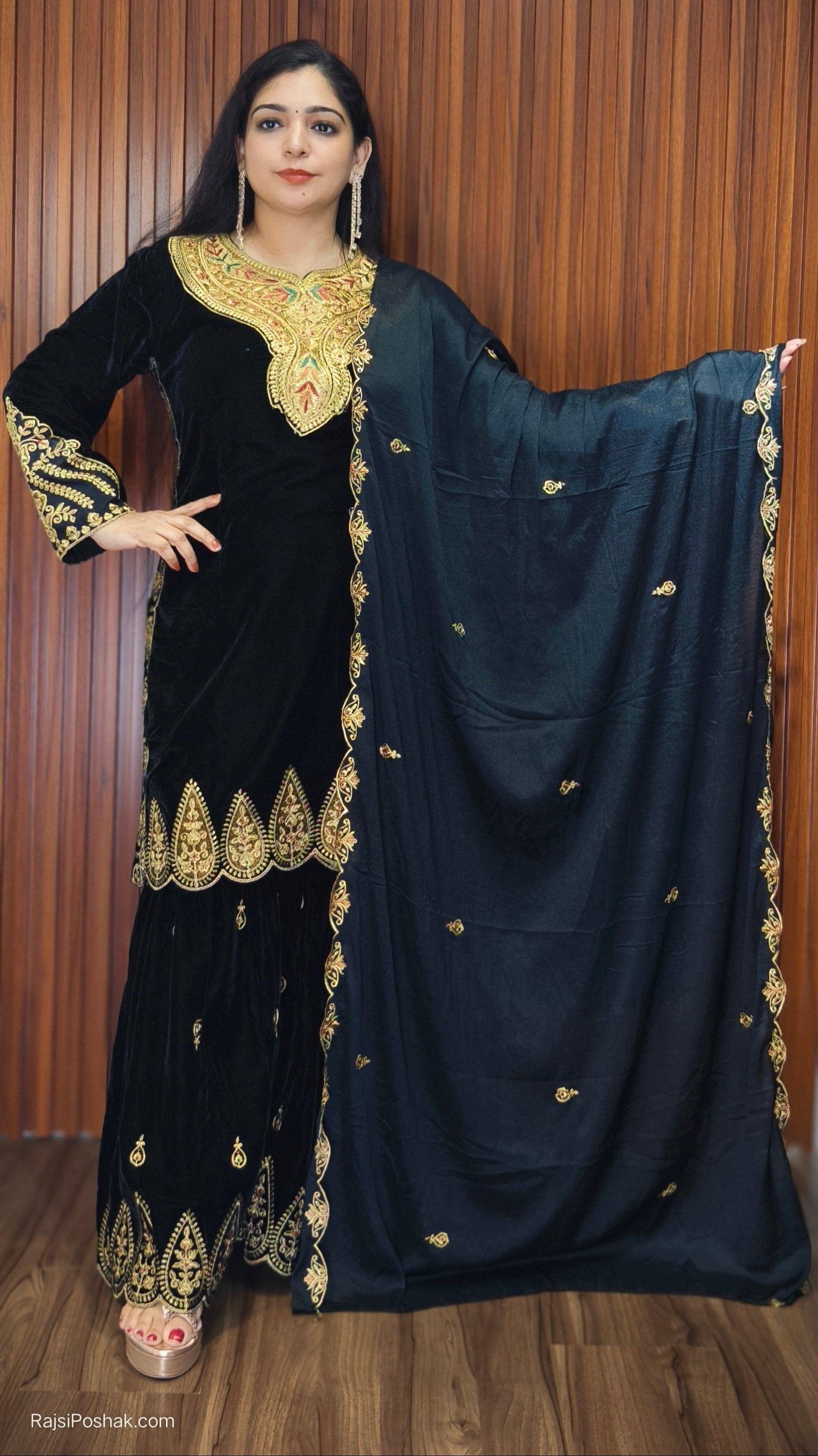 BLACK IMPORTED VELVET 2-PIECE COORD SET WITH EMBROIDERY WORK