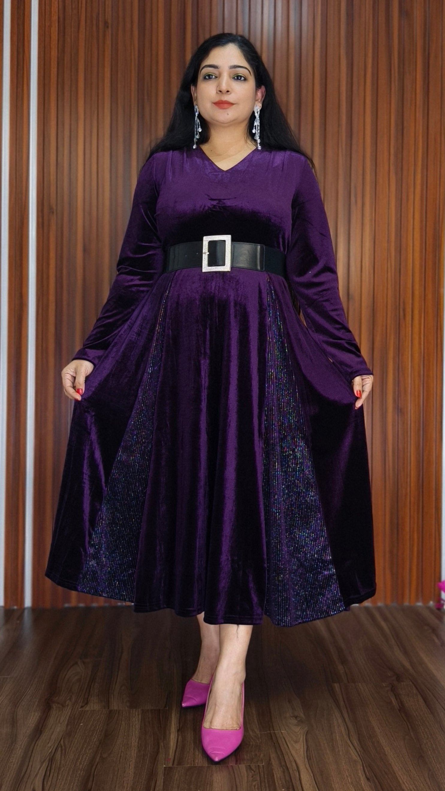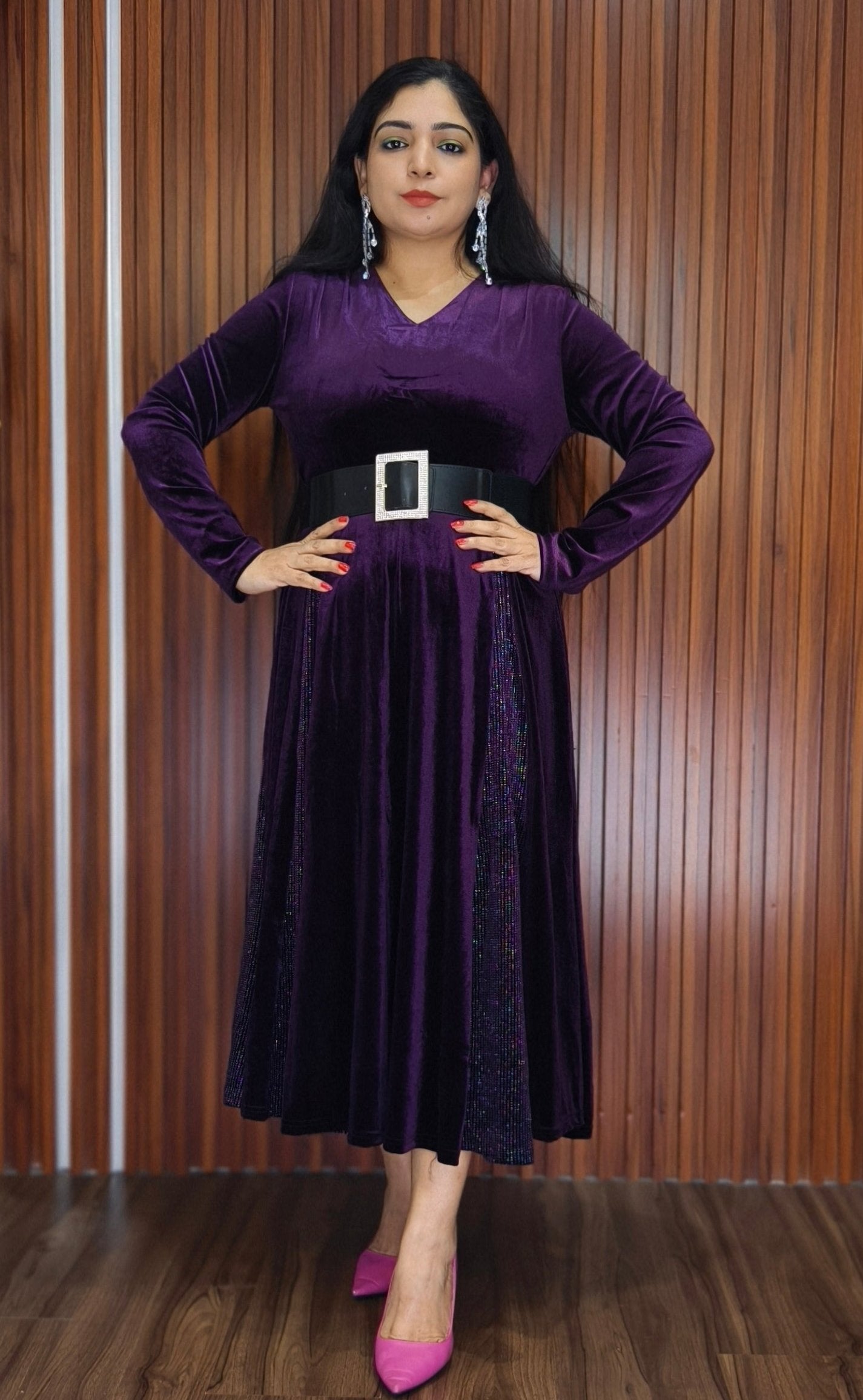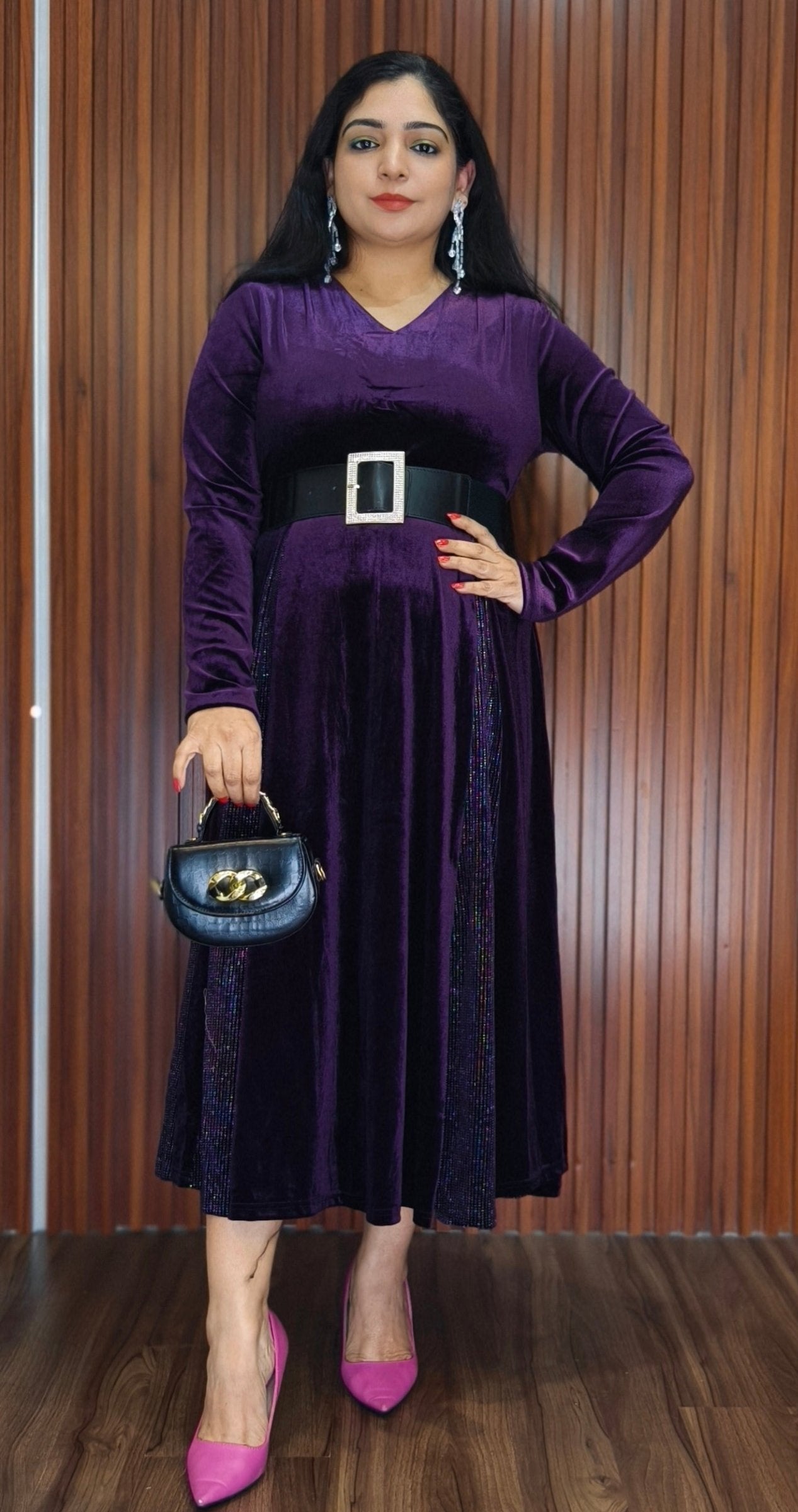 BLACK,PURPLE AND MAROON IMPORTED VELVET 2-PIECE COORD SET WITH EMBROIDERY WORK