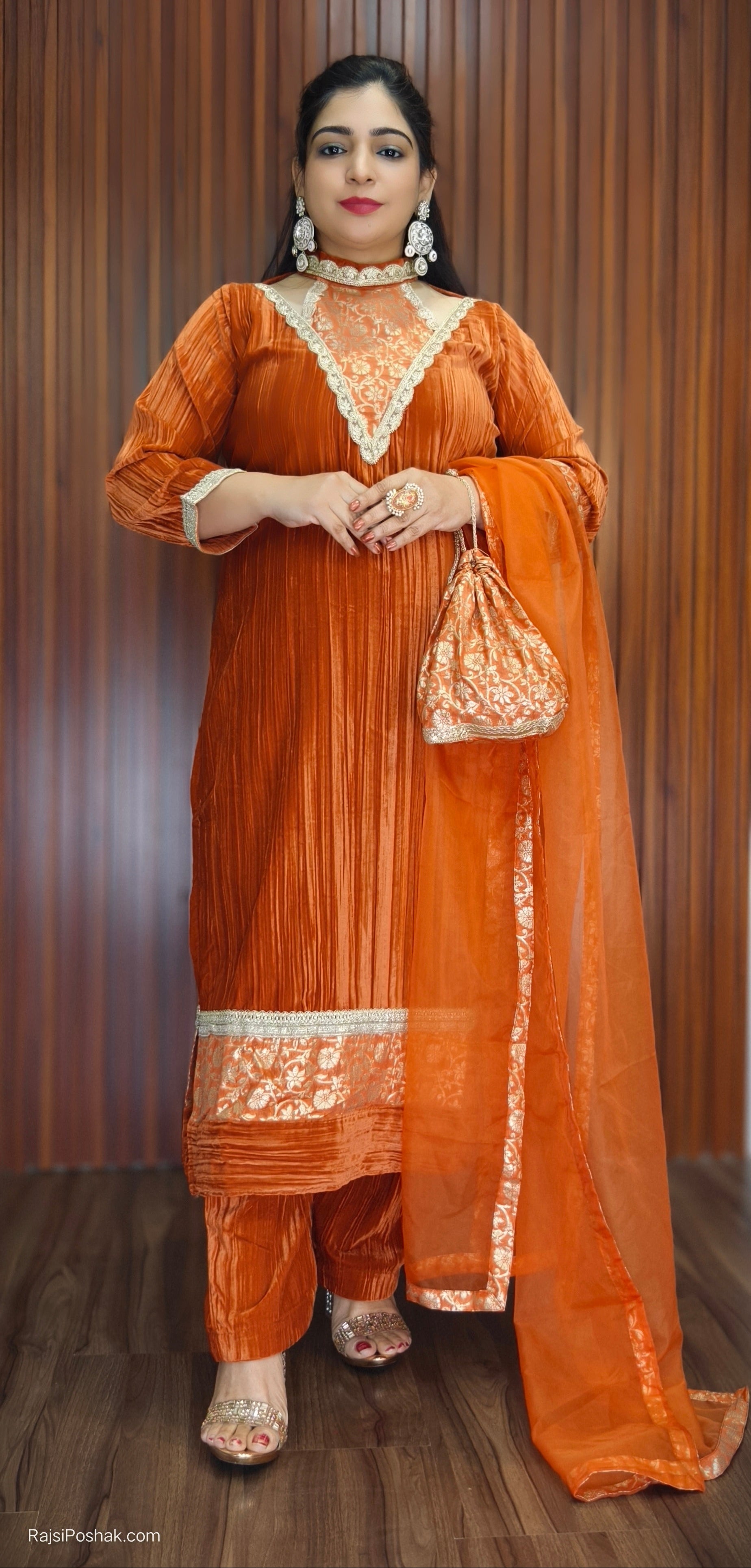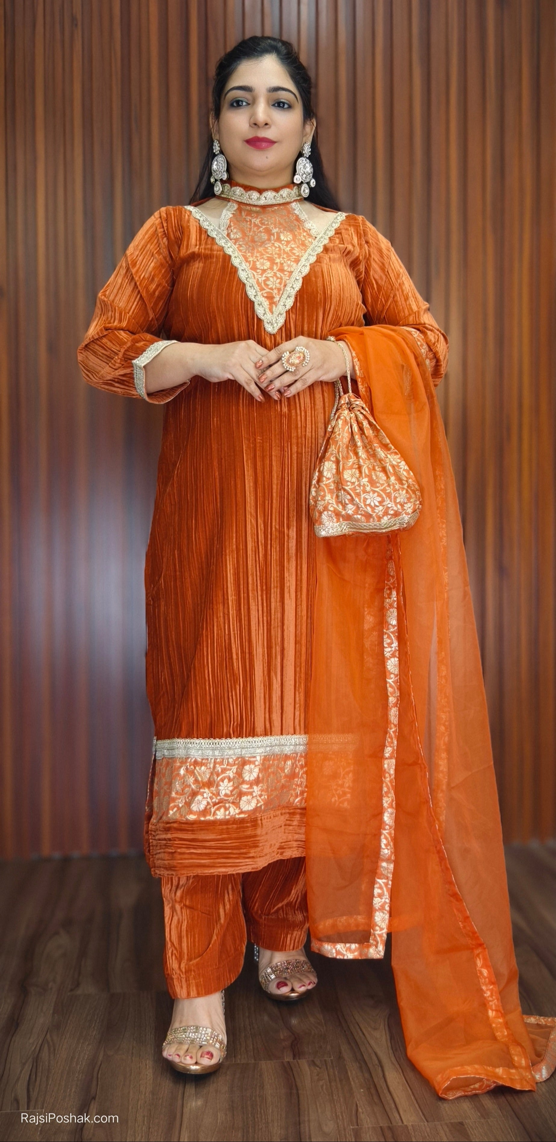 RUST IMPORTED FABRIC 2-PIECE COORD SET EMBROIDERY WORK