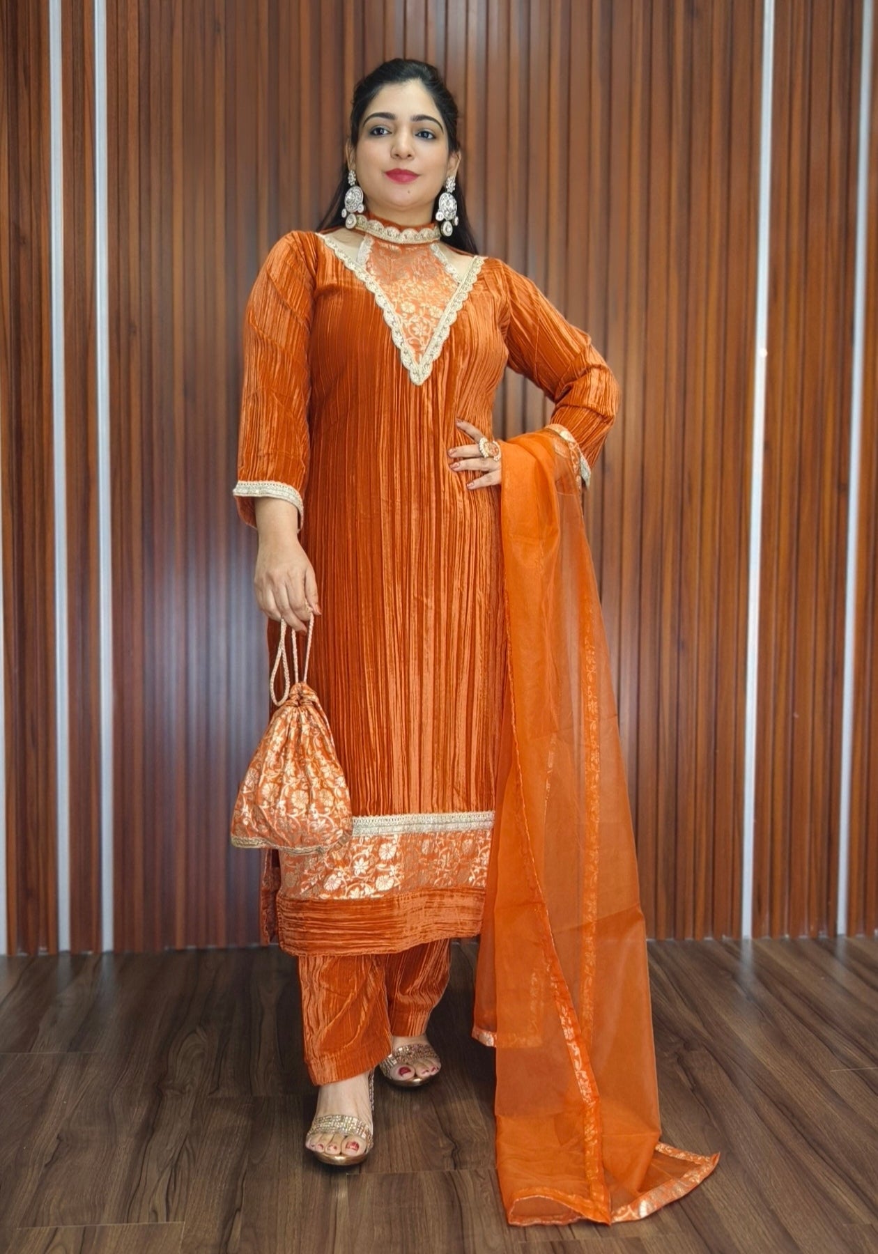 ORANGE COTTON LONG COORDSET WITH PLAZO