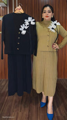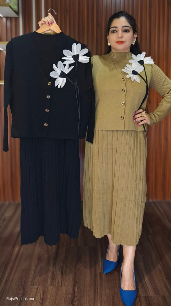 BLACK & BROWN 2 PCS WINTER DESIGNER DRESS