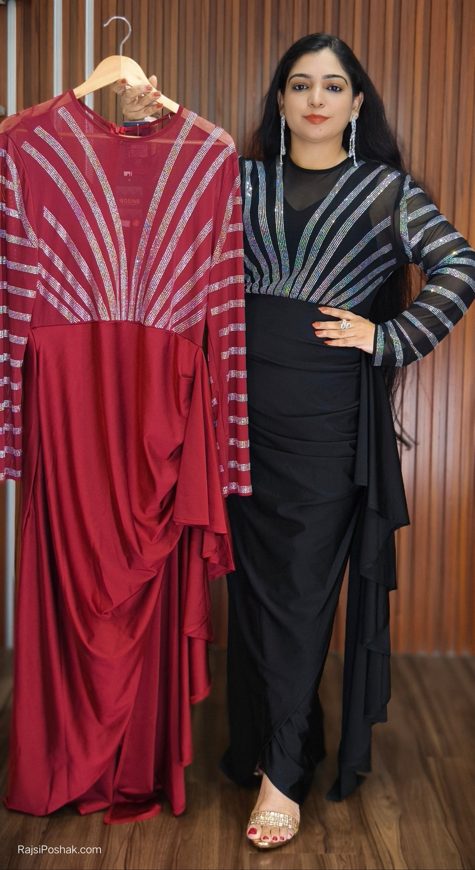 A must have BLACK , MAROON AND BLUE IMPORTED STREACHABLE DRESS in your wardrobe .