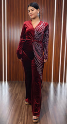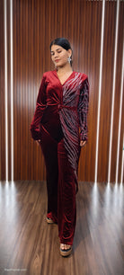 DESINGER LUXURIOUS VELVET FULL LEG JUMPSUIT from plush velvet, this elegant piece drapes beautifully, offering a flattering silhouette that enhances your figure. The full-leg design adds an air of refinement, making it ideal for both formal occasions and stylish gatherings. With its versatile nature, you can dress it up with statement jewelry or keep it chic and simple. Embrace effortless glamour and make a statement wherever you go