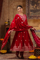 HOT PINK VELVET ANARKALI WITH BEAUTIFUL DUPATTA