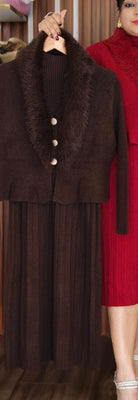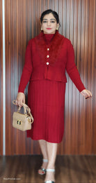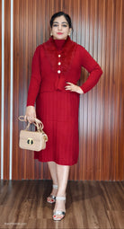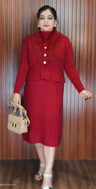 MAROON,COFFEE & BROWN WOLLEN ONE PIECE DRESS