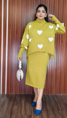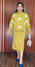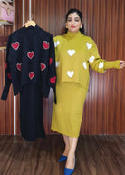 ORANDESIGNE WOMEN'S KNITTED TWO-PIECE SET: LOVE EMBROIDERY PULLOVER AND BODYCON MIDI SKIRT, ELEGANT SWEATER DRESS FOR PARTIES