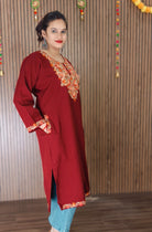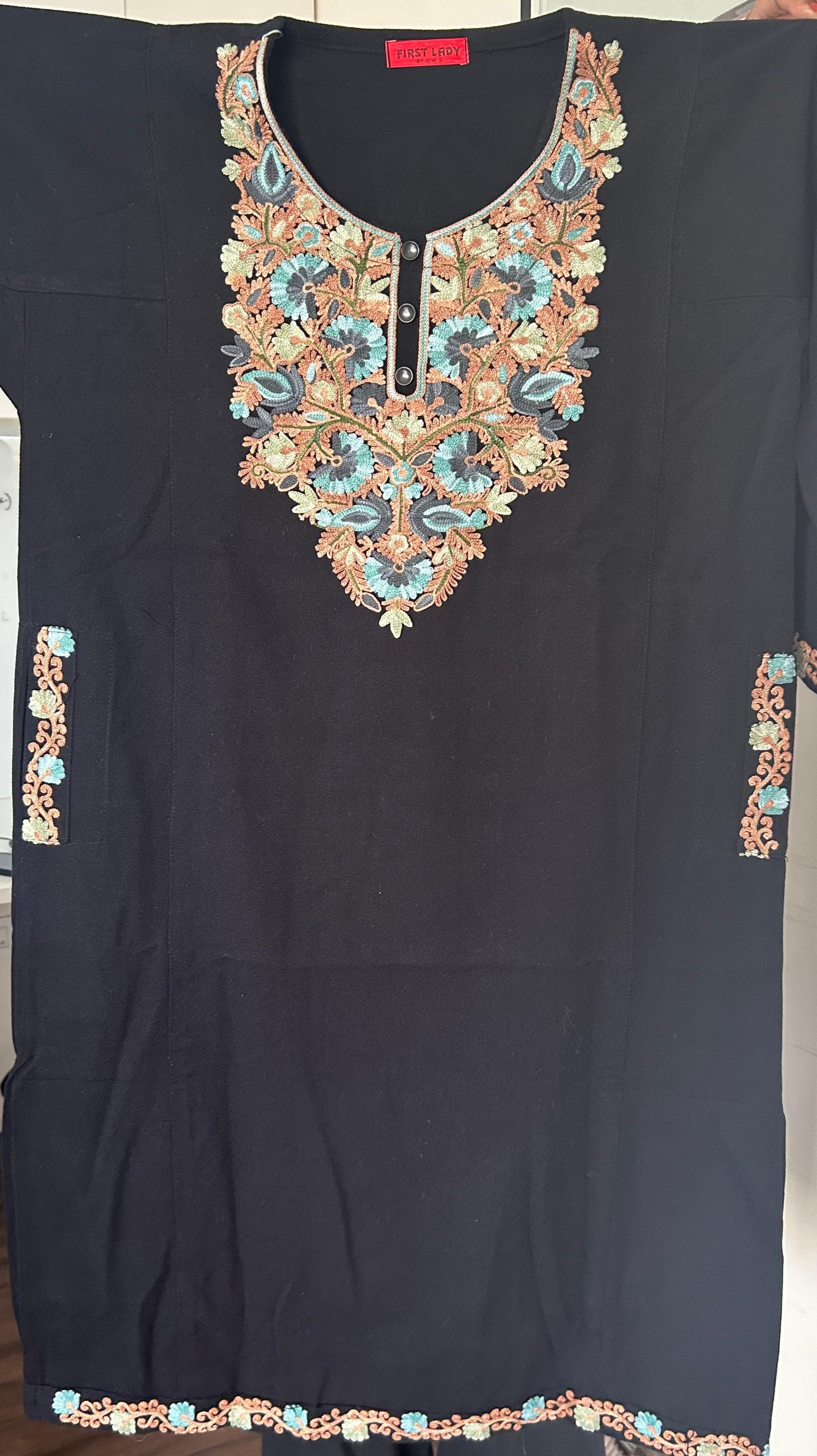MAROON AND BALCK HEAVY PASHMINA EMBROIDERED KURTI