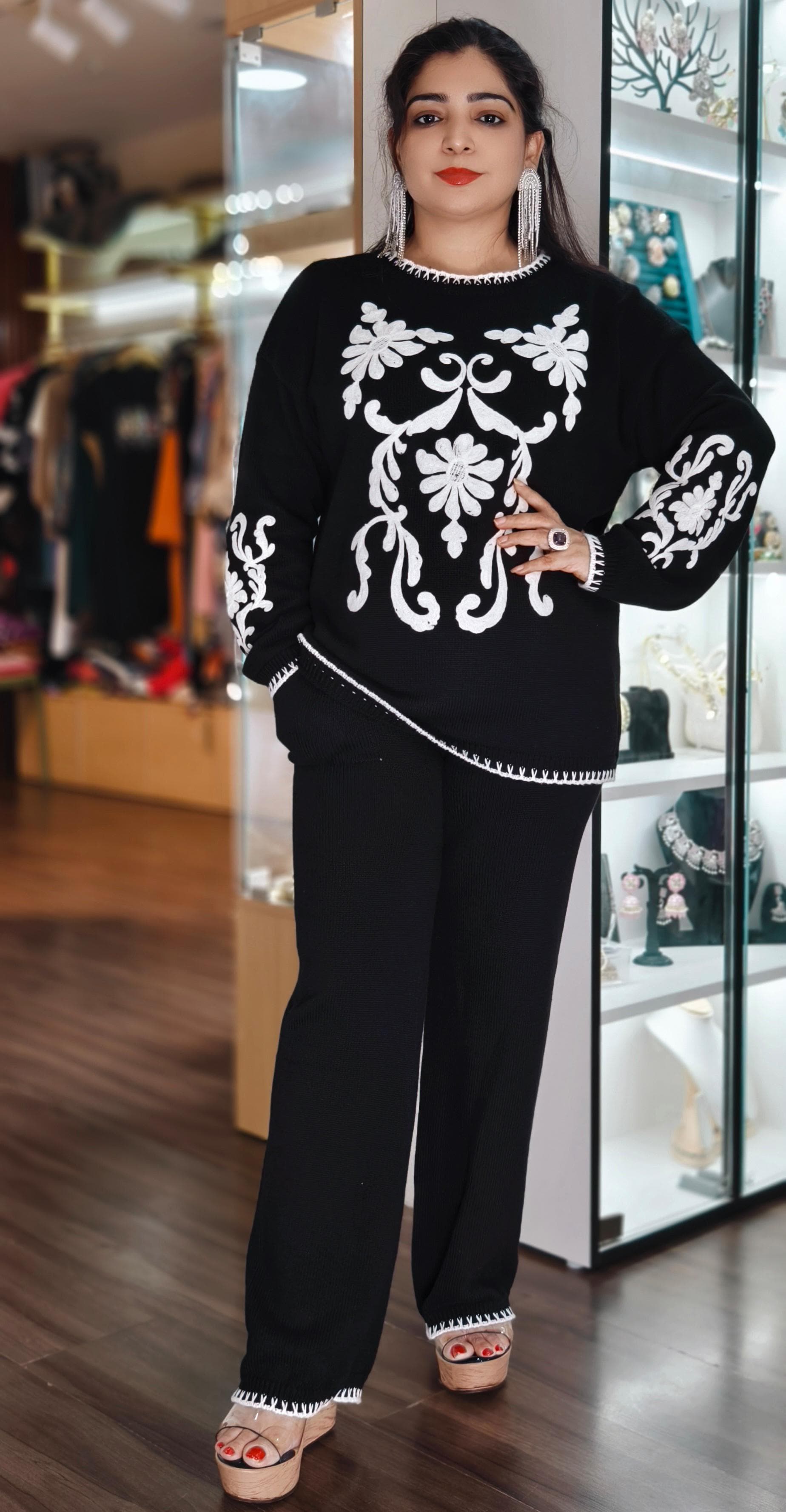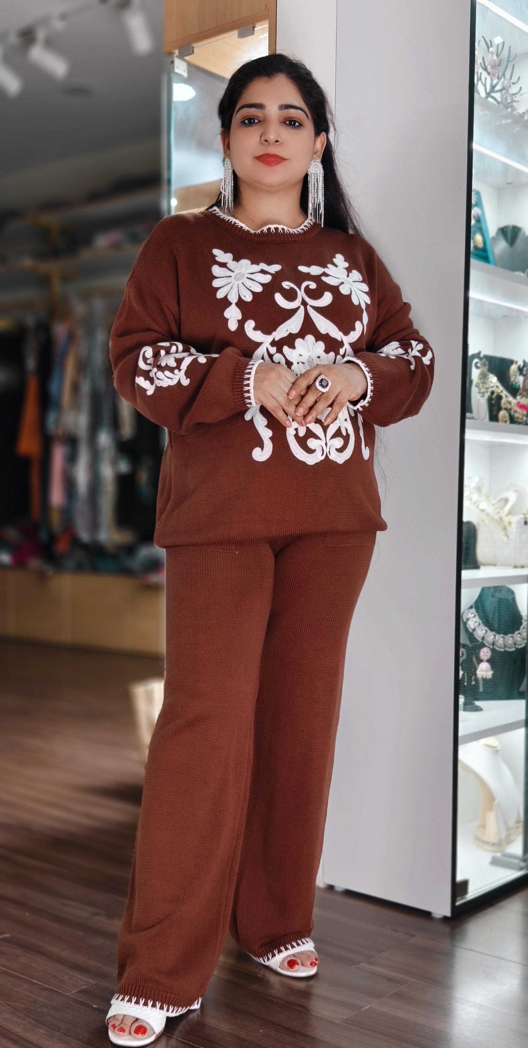 A must have WINTER DESIGNER COORD SET with in your wardrobe. It comes with STYLISH BOTTOM PANT.