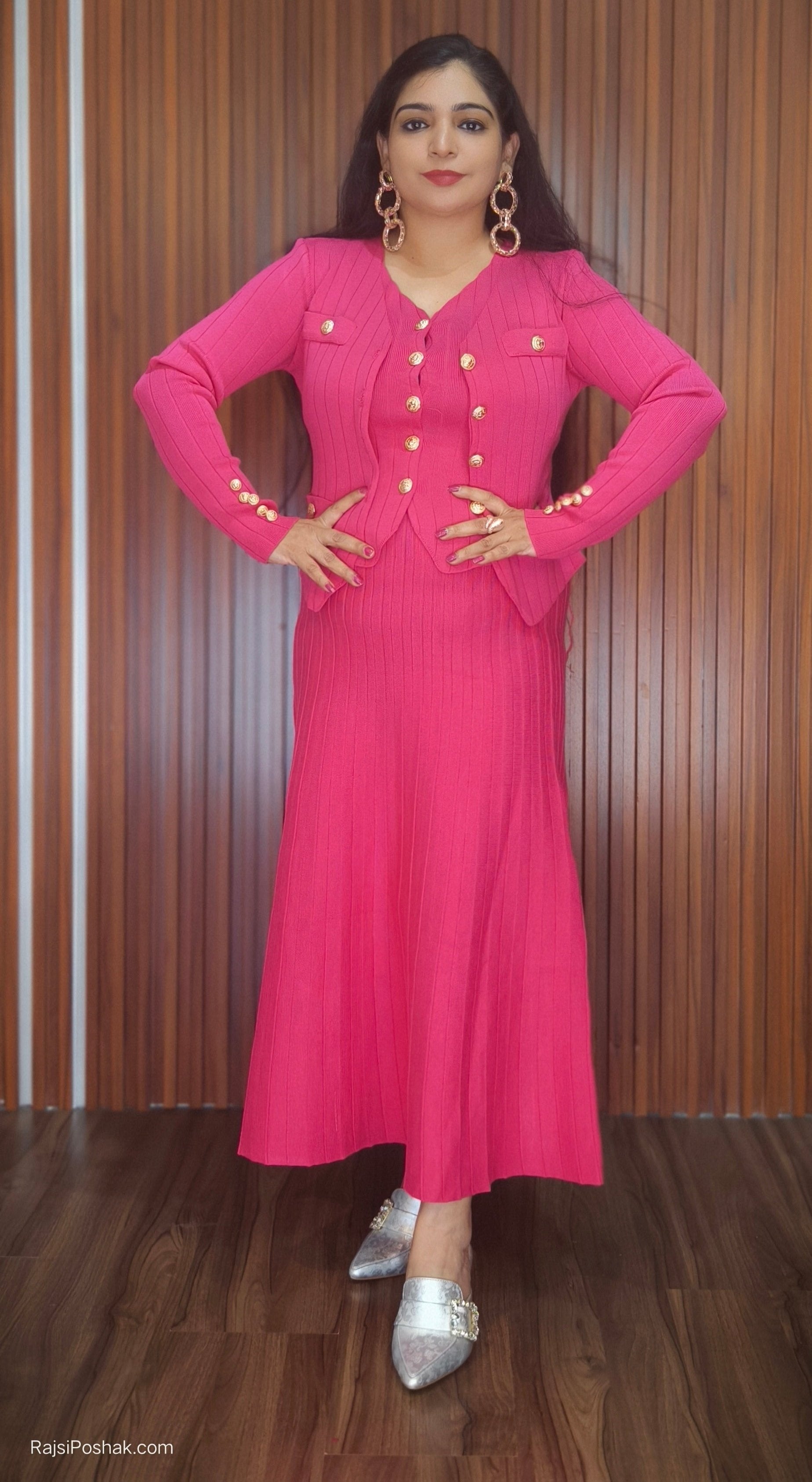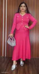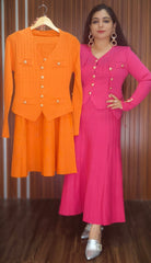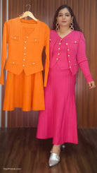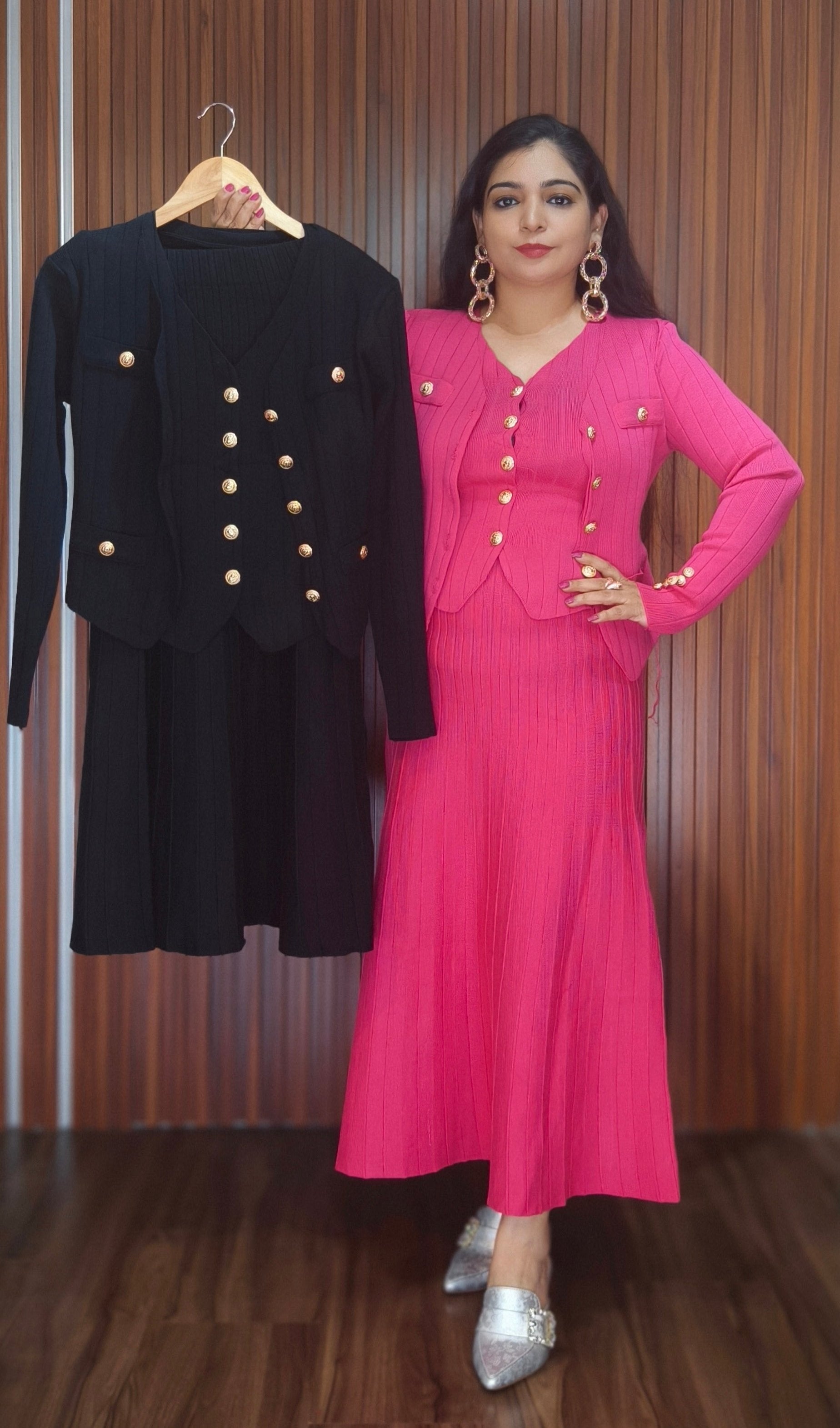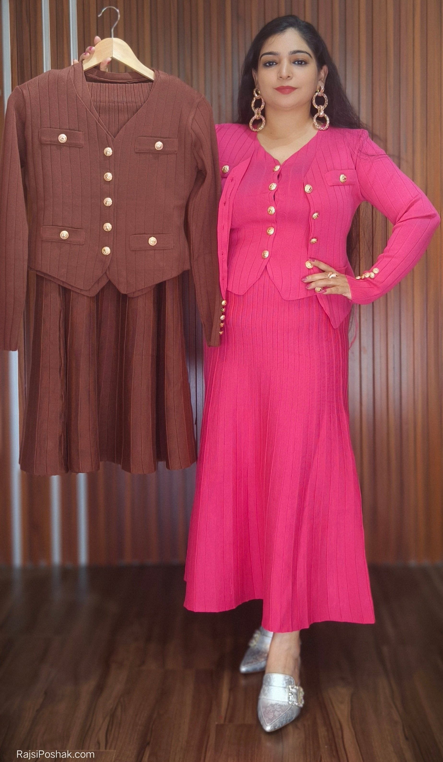 ELEGANT WINTER DRESS FOR PARTIES - WOMEN'S KNITTED 3-PIECE SKIRT SET DRESS