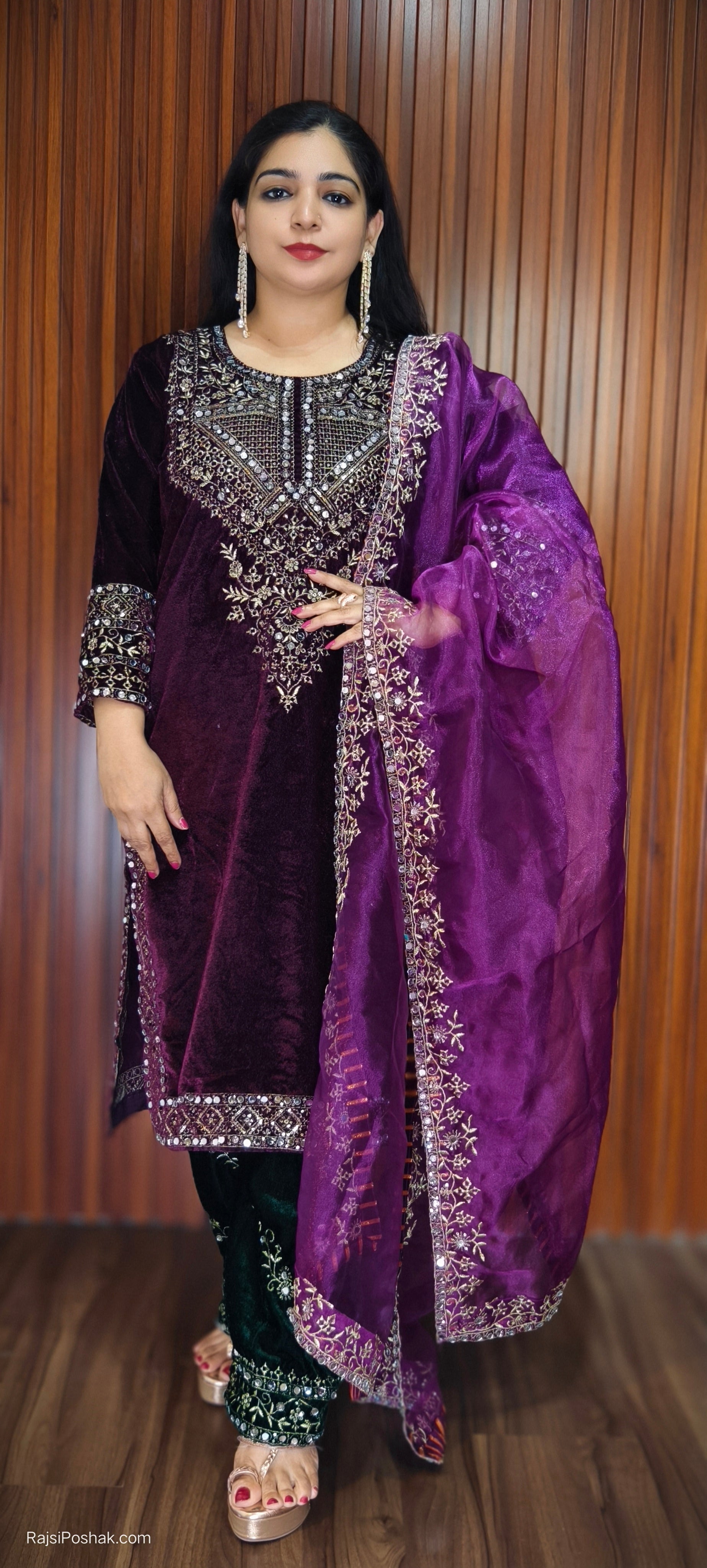 ADORABLE HEAVY VELVET SEQUENCE EMBROIDERY WORK SUIT WITH PANT AND DUPATTA