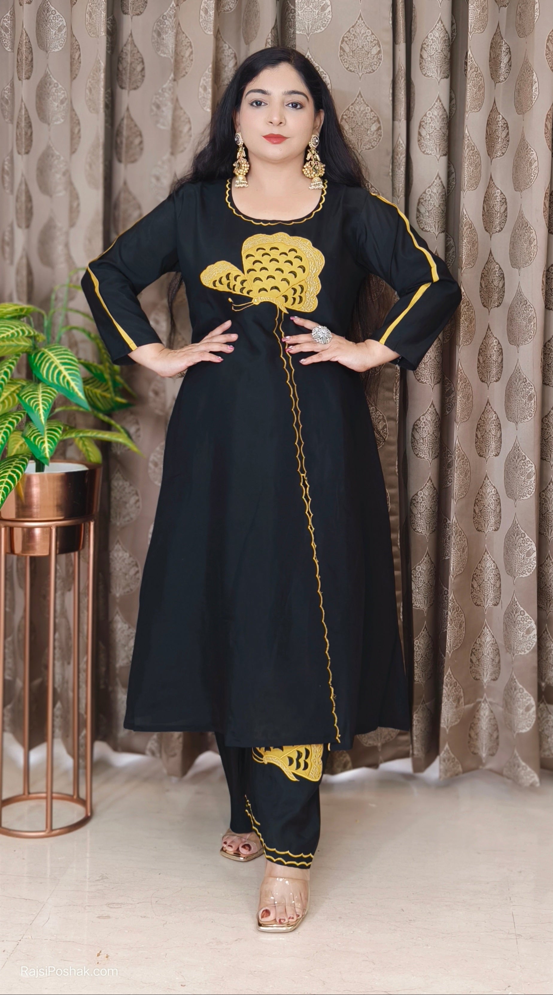 BLACK AND RED MODAL COTTON LONG COORDSET WITH DESIGNER PLAZO