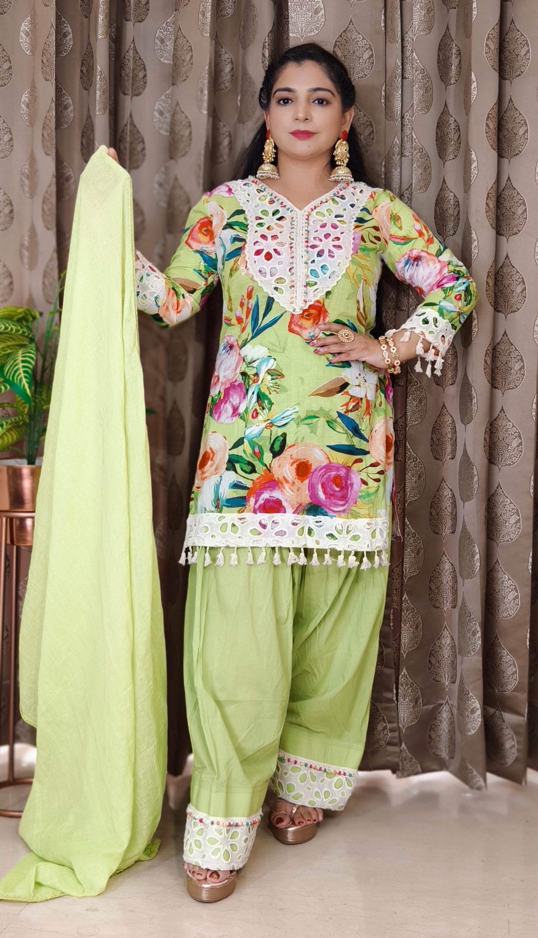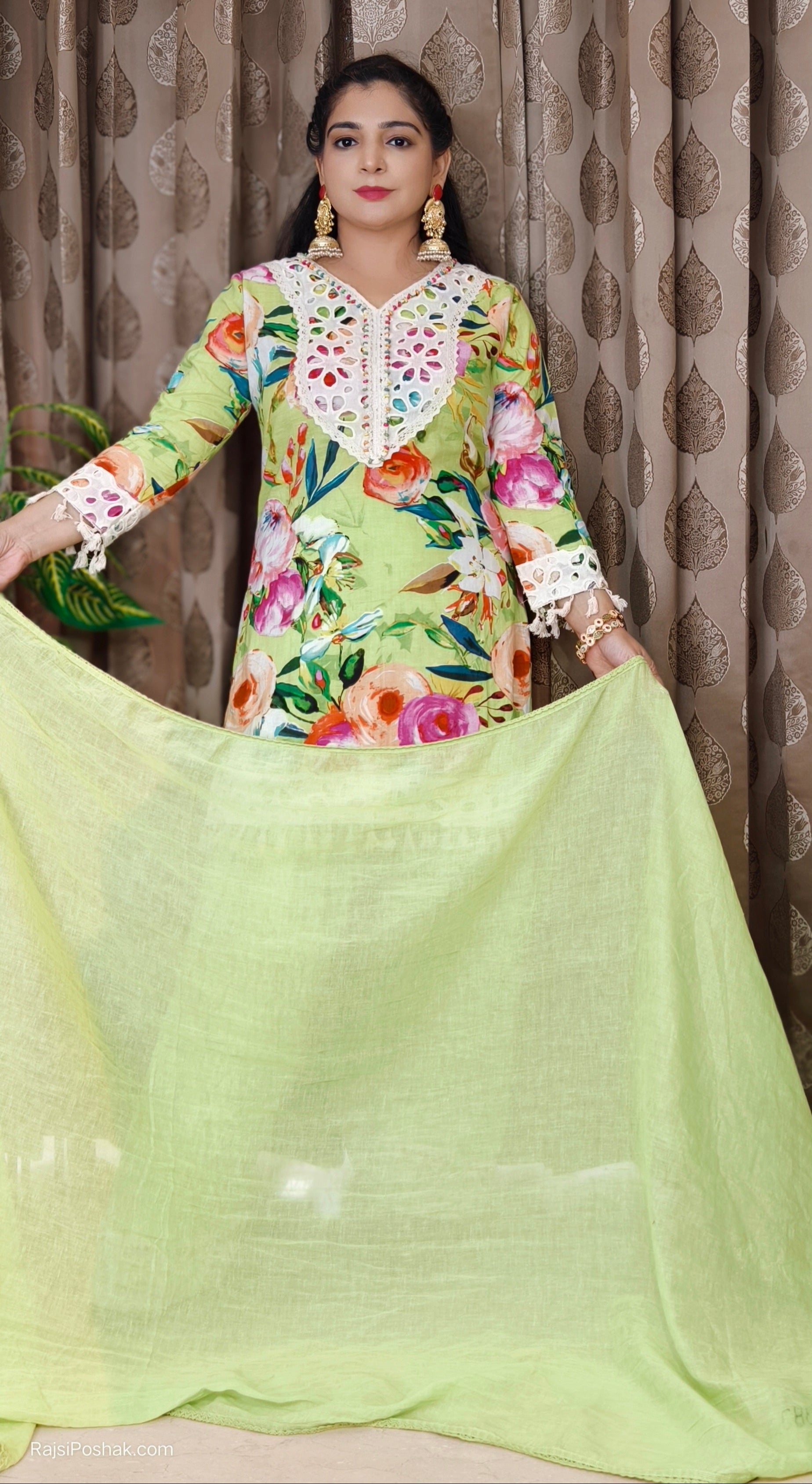 GREEN PREMIUM COTTON COORDSET WITH DESIGNER BOTTOM