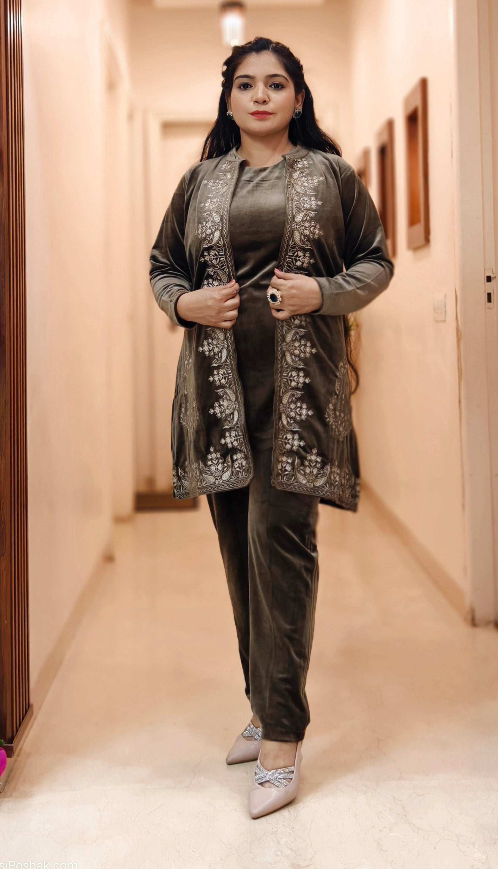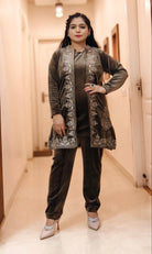 A GREEN PREMIUM VELVET COORD SET WITH DESIGNER WORK AND JACKET stylish and versatile matching set designed for effortless coordination. Perfect for creating a chic and put-together look, this set offers comfort and fashion in one. Ideal for both casual and semi-formal occasions, it combines quality fabric with a modern design to elevate your wardrobe.