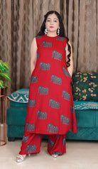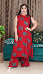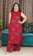 MAROON COTTON LONG COORDSET WITH PLAZO