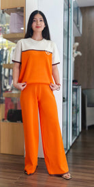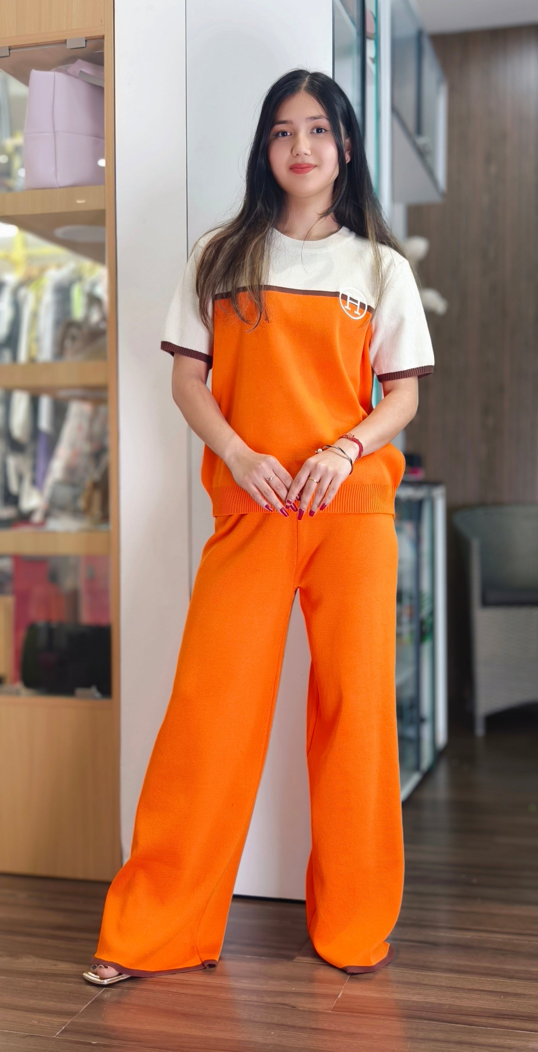 ORANGE AND BLACK IMPORTED KNITTED FABRIC COORDSET
