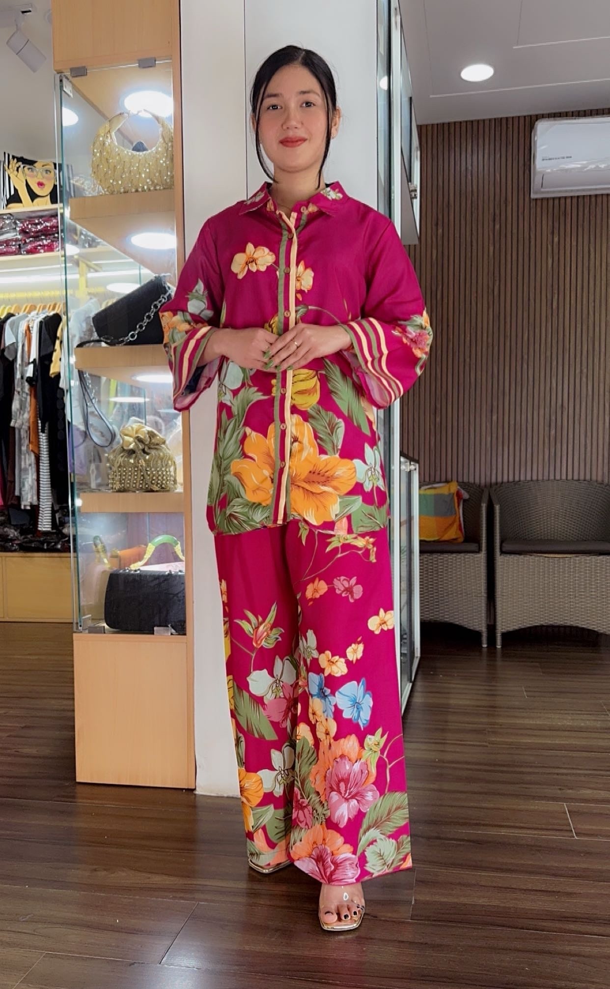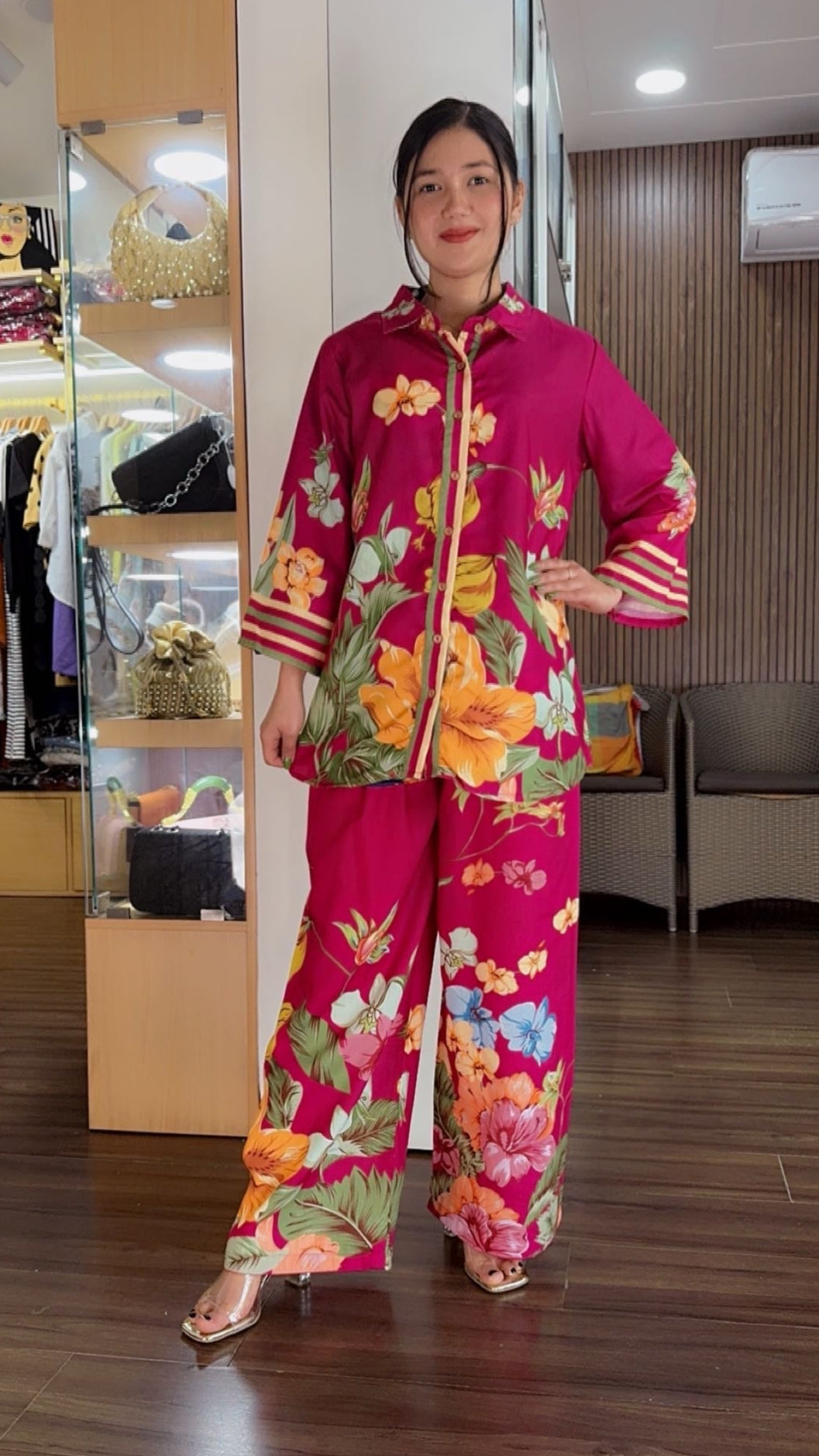 PINK AND BLUE COTTON COORDSET WITH DIGITAL PRINT