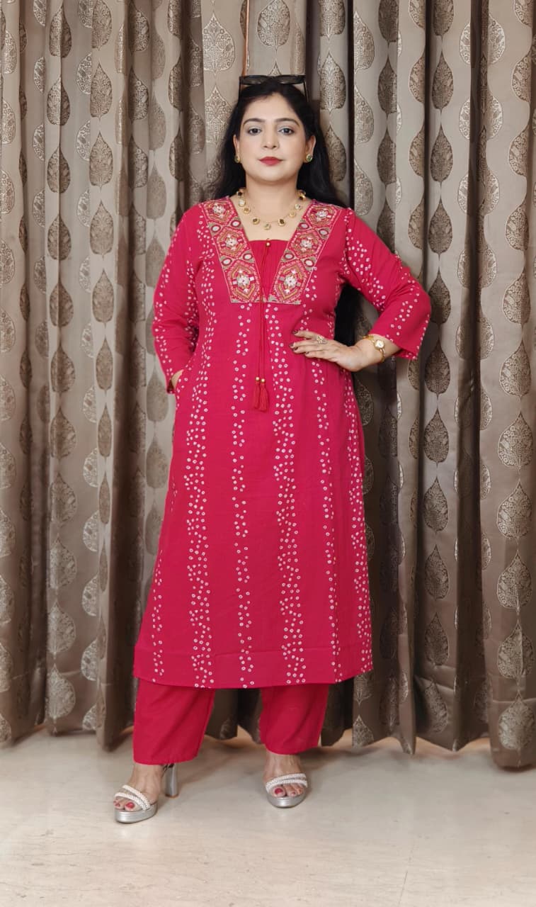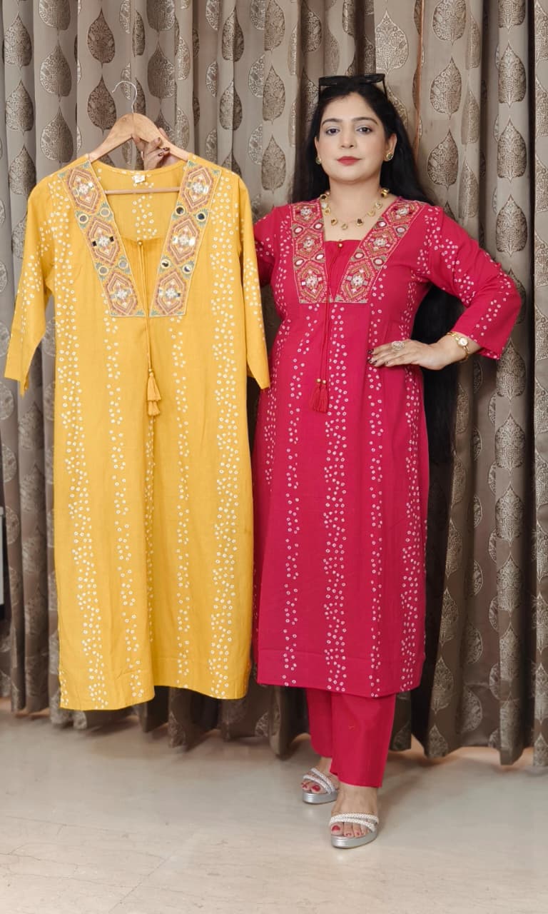 This PINK AND YELLOW PREMIUM COTTON LONG COORDSET WITH PANT coordinated set offers a fresh, vibrant look with its clean, crisp design. Perfect for casual outings or a laid-back day, the set features a comfortable, breathable cotton fabric that ensures all-day ease. The contrasting yellow accents add a pop of color, making it both stylish and effortlessly chic. Ideal for warm weather, this set combines comfort with modern flair, making it a versatile addition to any wardrobe.
