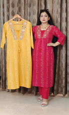 PINK AND YELLOW PREMIUM COTTON LONG COORDSET WITH PANT