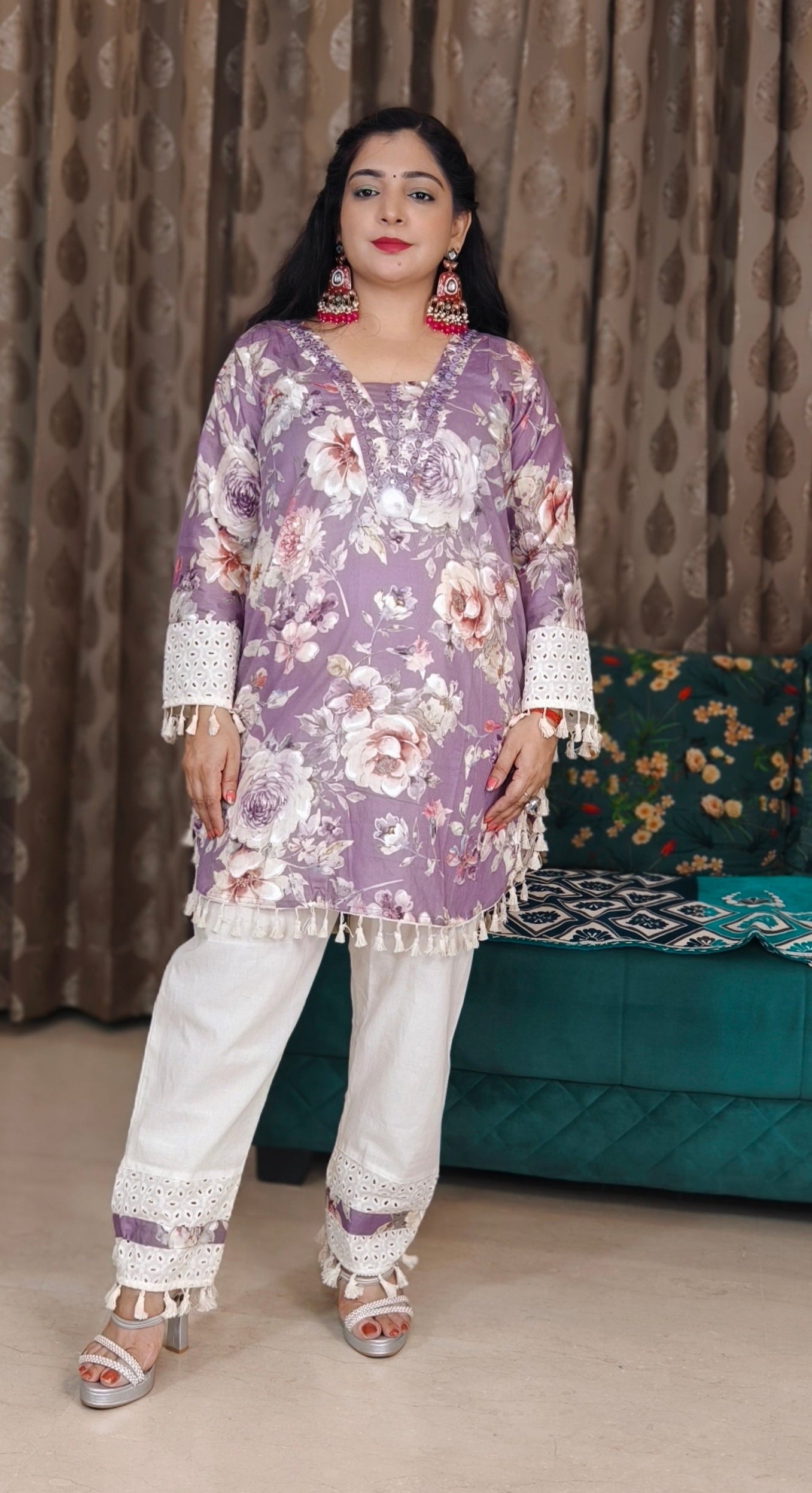PURPLE PREMIUM COTTON COORDSET WITH DESIGNER PANT