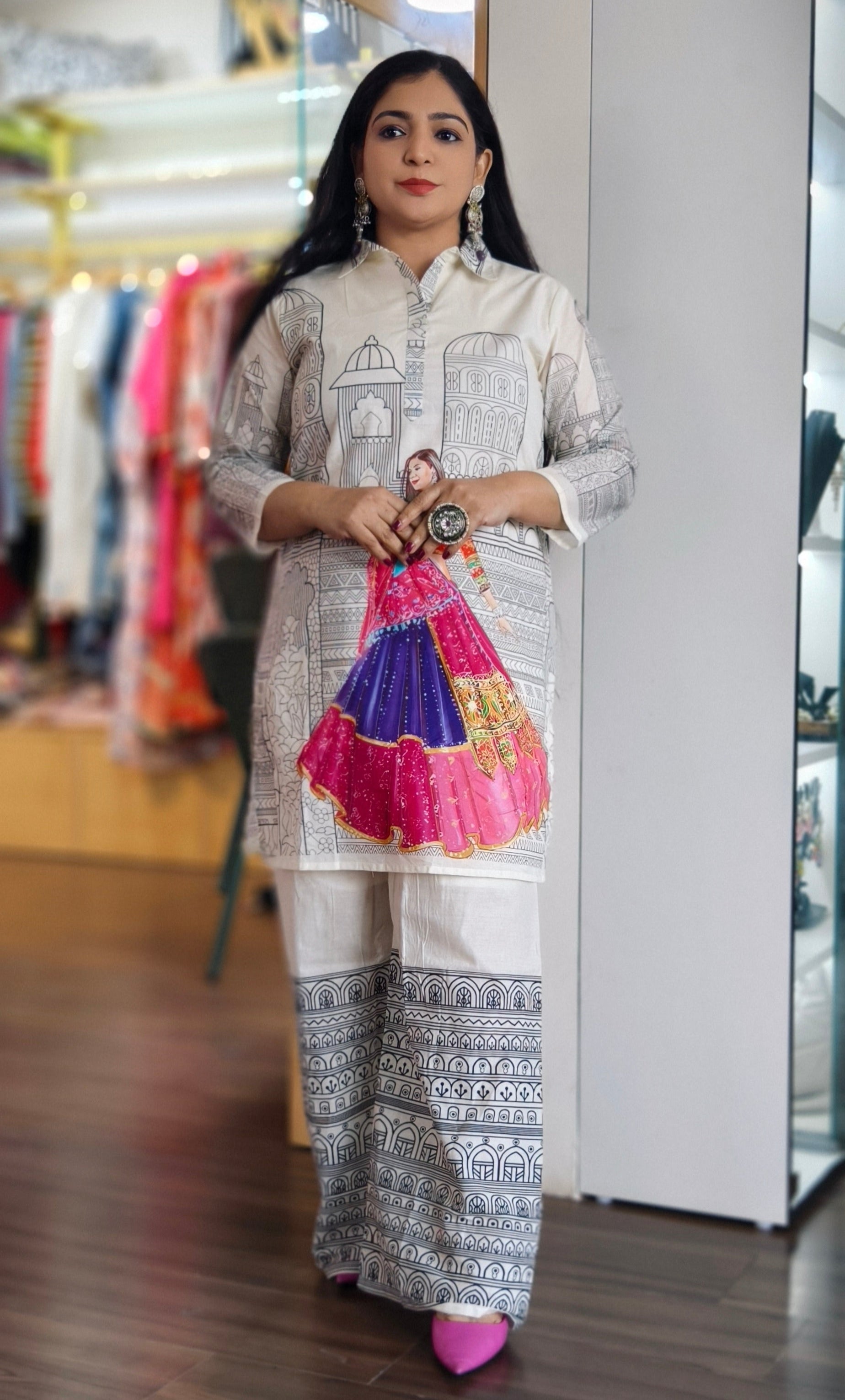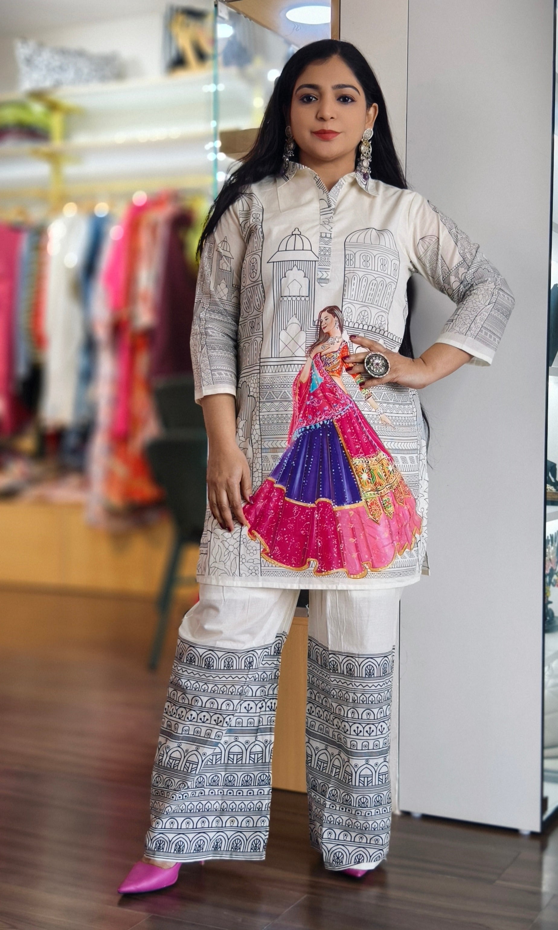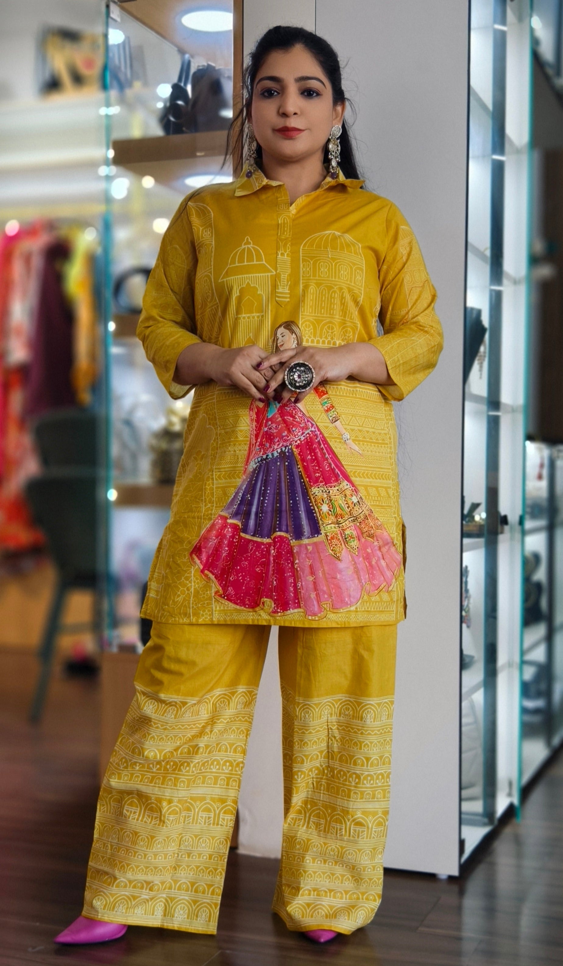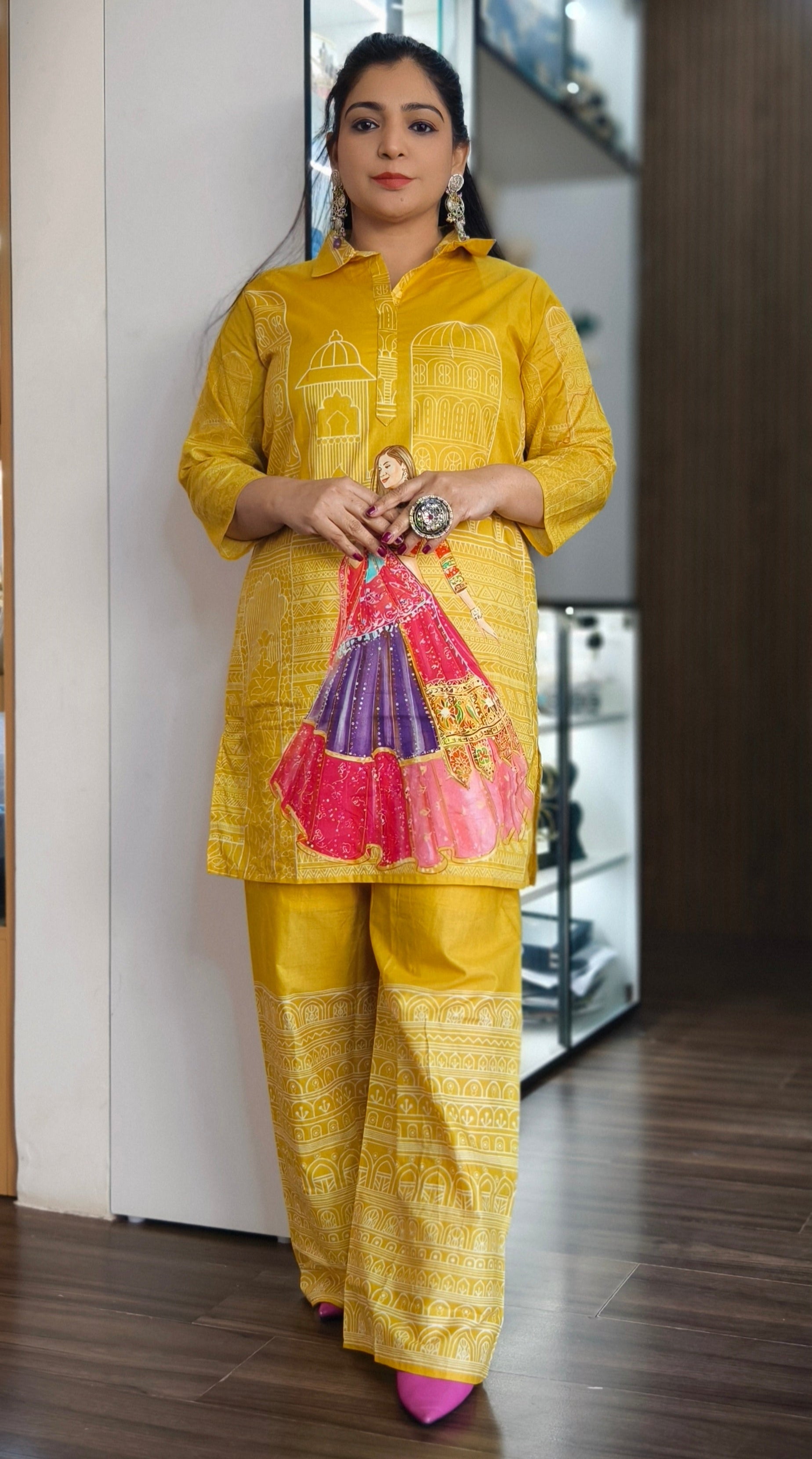 WHITE AND YELLOW COTTON COORDSET WITH DIGITAL PRINT