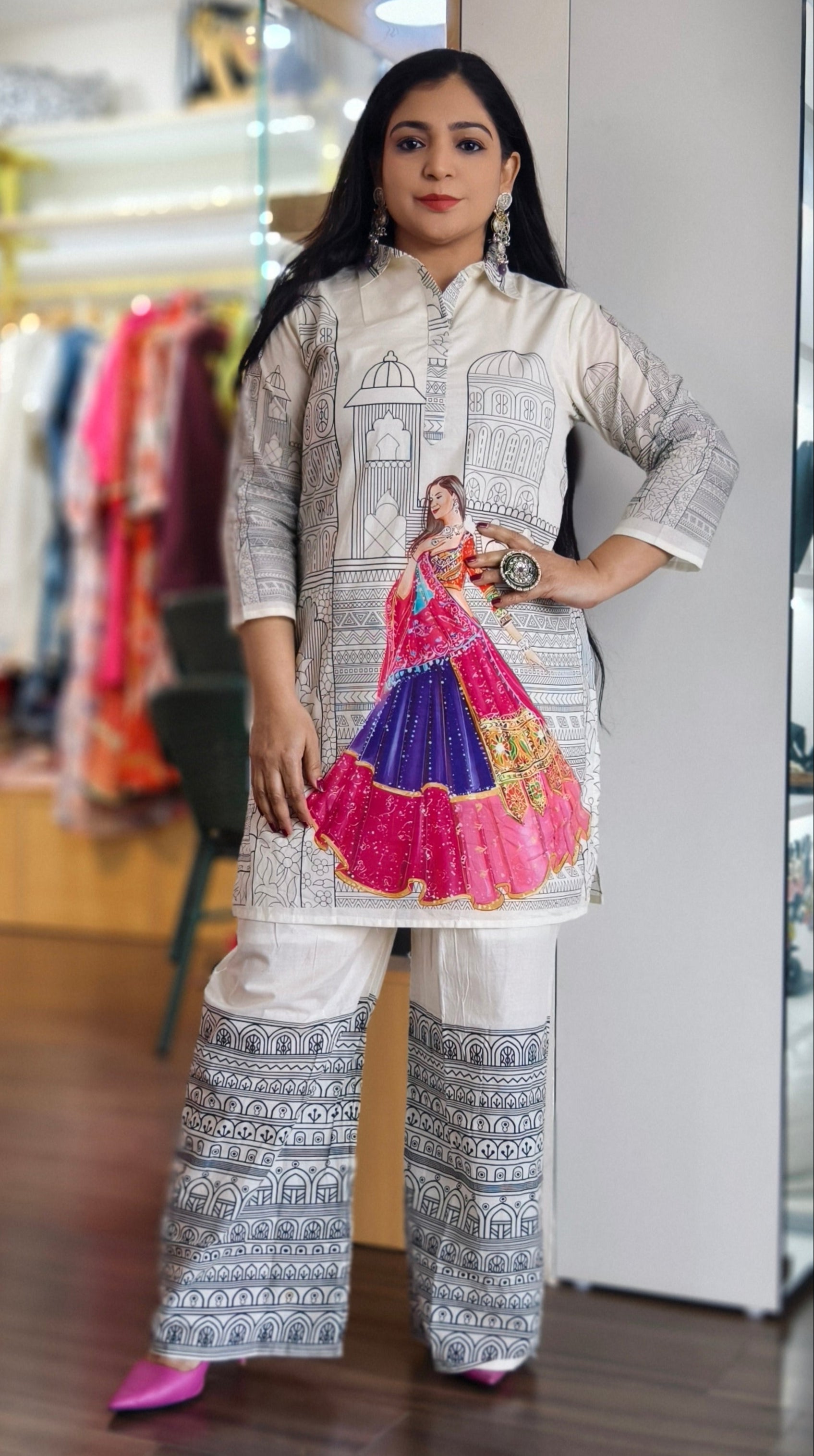 This white and yellow cotton coordinated set offers a fresh, vibrant look with its clean, crisp design. Perfect for casual outings or a laid-back day, the set features a comfortable, breathable cotton fabric that ensures all-day ease. The contrasting yellow accents add a pop of color, making it both stylish and effortlessly chic. Ideal for warm weather, this set combines comfort with modern flair, making it a versatile addition to any wardrobe.