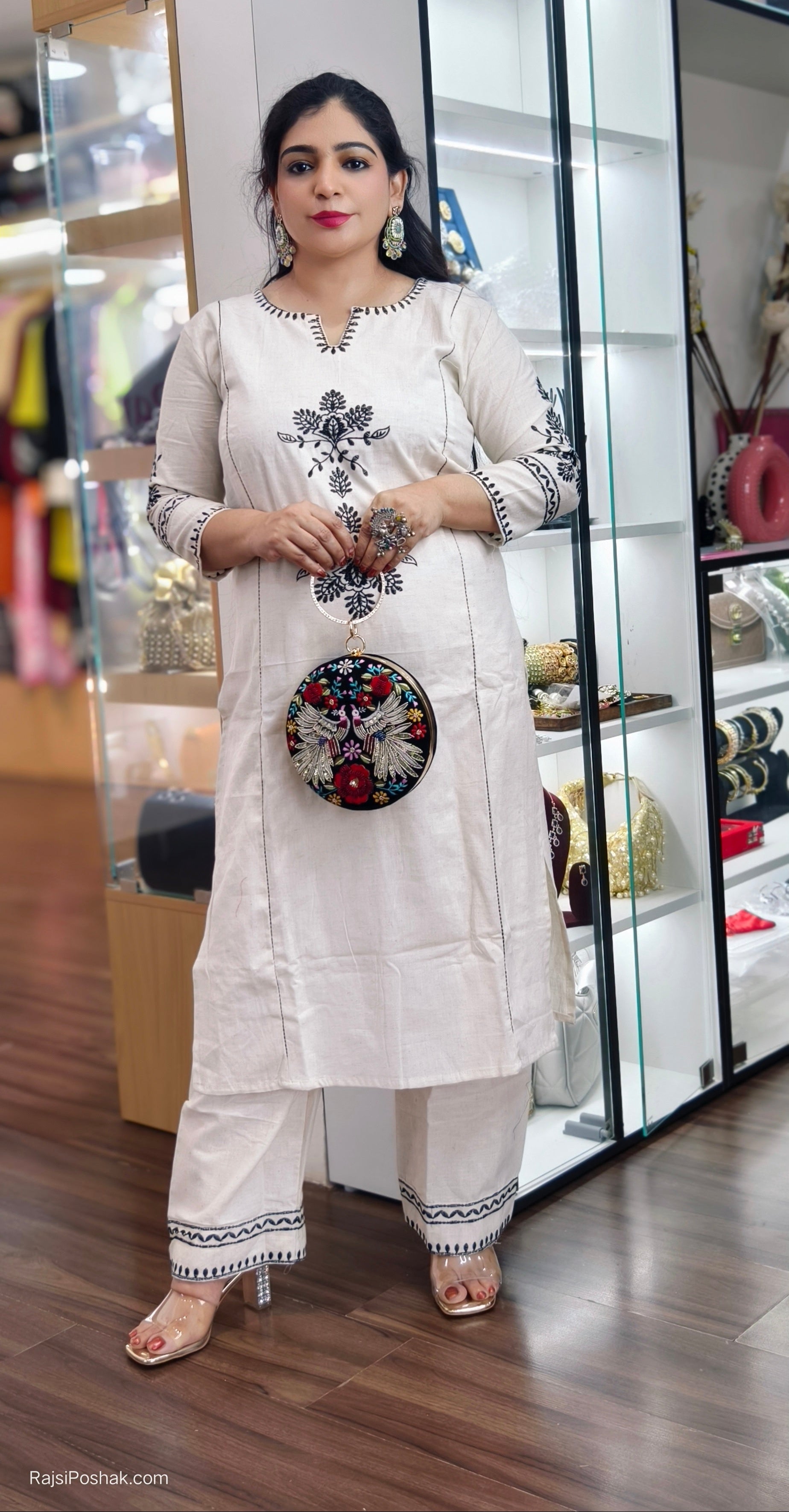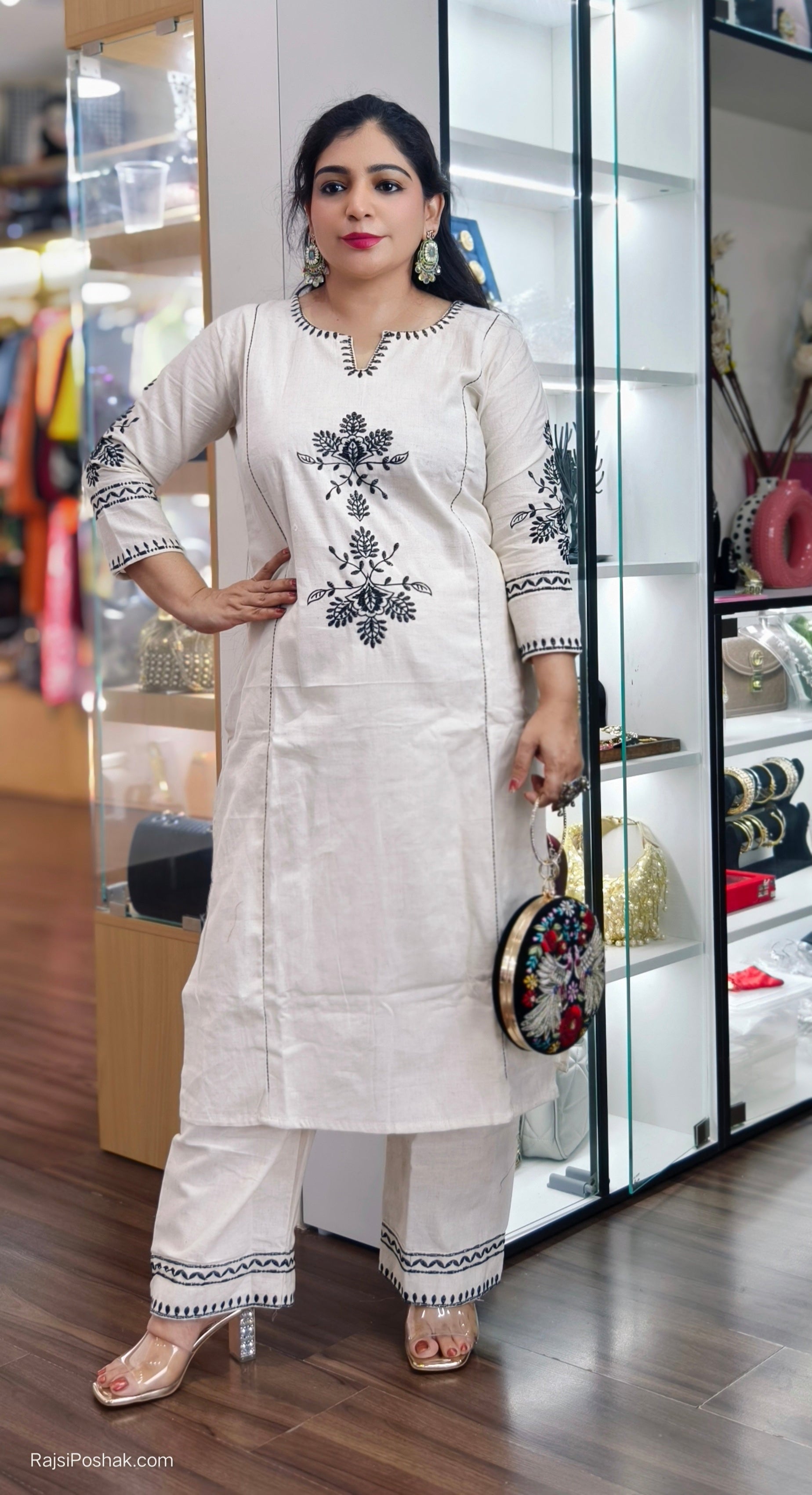 WHITE HANDLOOM COTTON COORDSET WITH EMBROIDERY