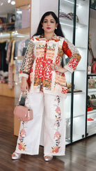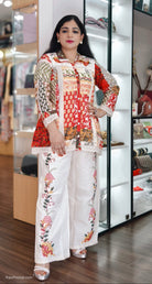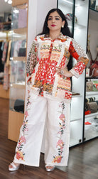 WHITE/RED MIX PURE COTTON COORDSET WITH EMBROIDERY
