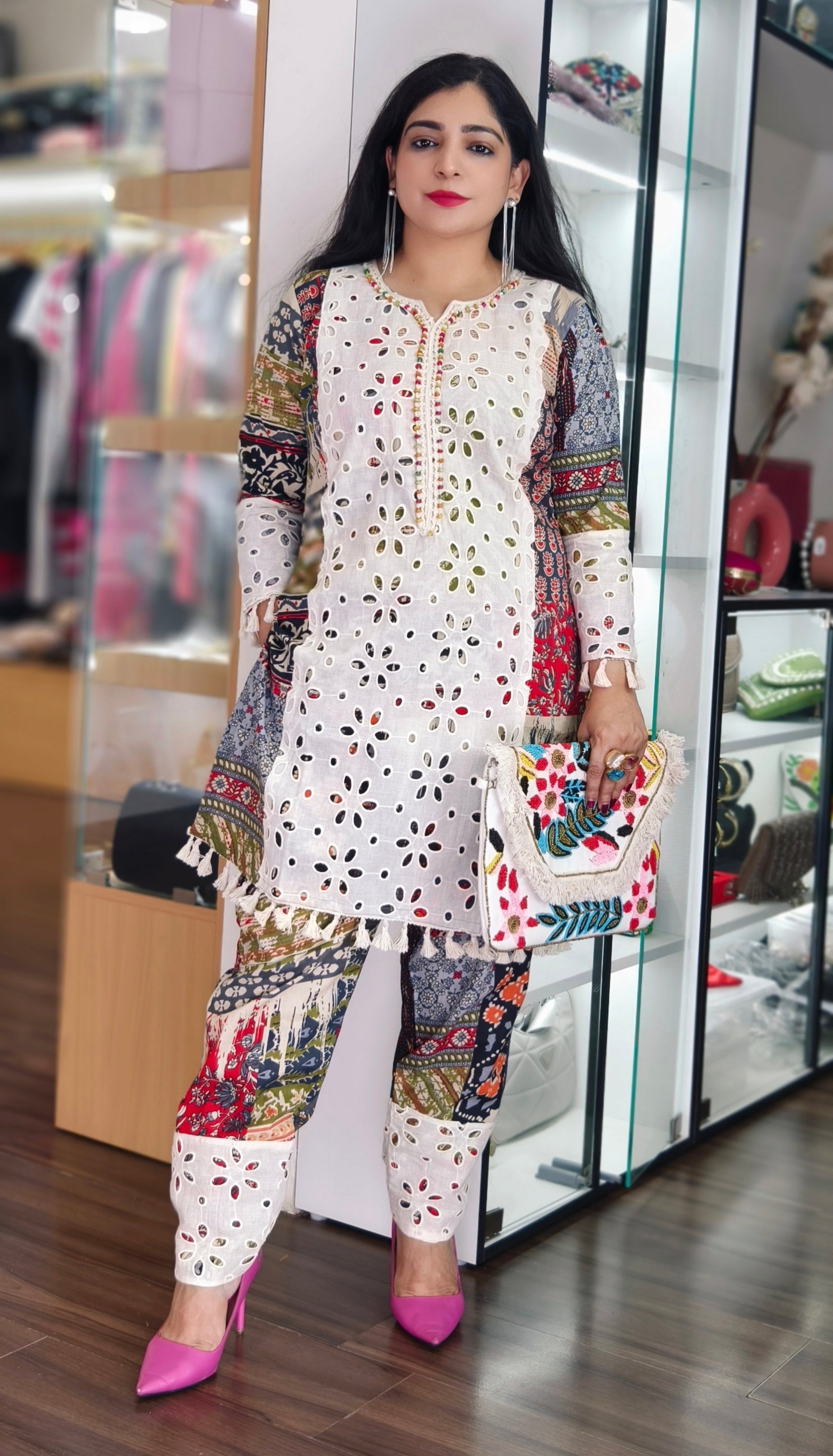 WHITE SHIFLI COTTON COORDSET WITH EMBROIDERY